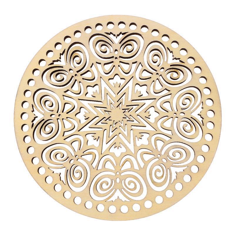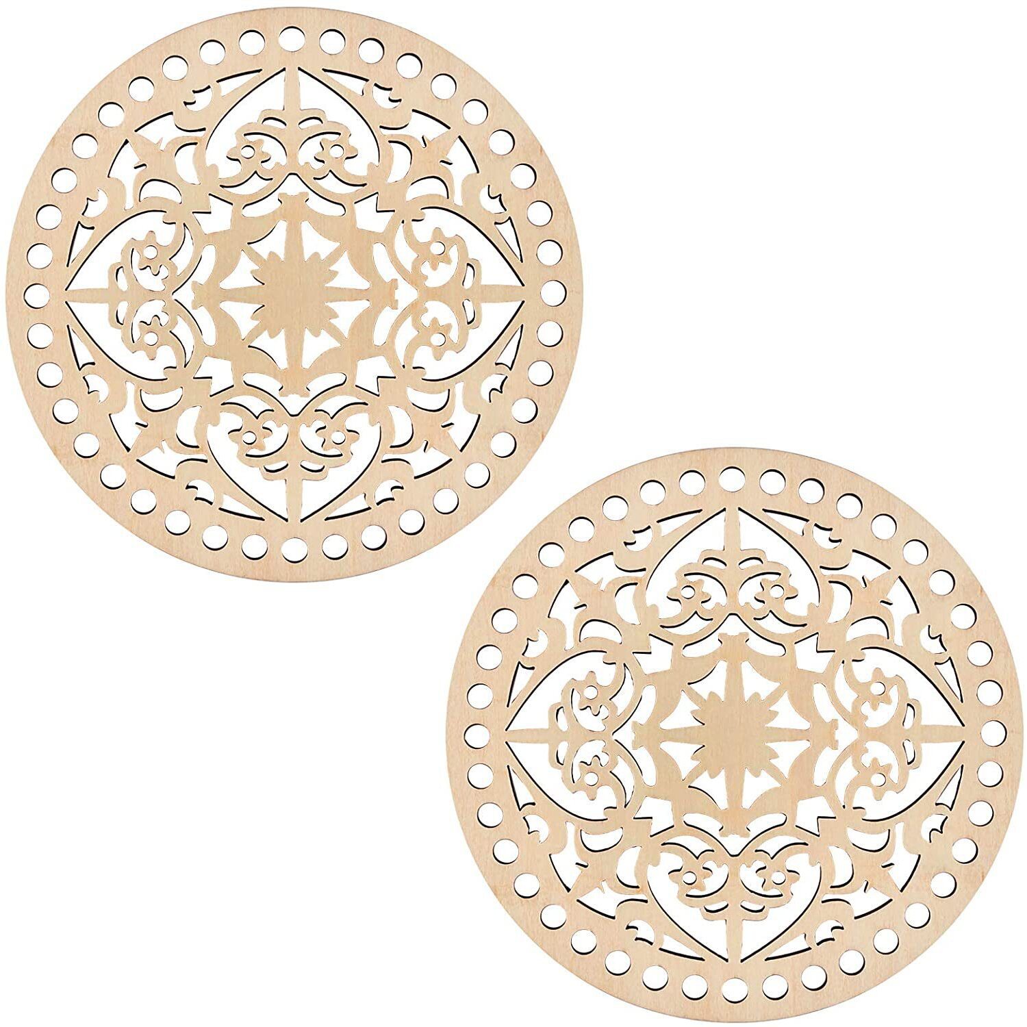2pcs木製ラウンド中空フラワーパターンバッグベースDIY木製編み用品と家の装飾
