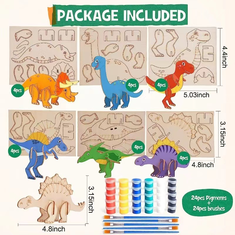 クロスボーダー3D木製品恐竜パズルセット知育創造工芸品DIY手作り児童絵画落書き