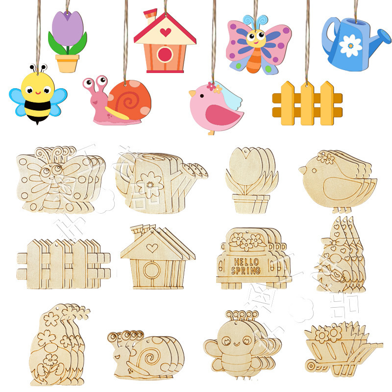 木製の透かし彫り飾り春の絵画塗装装飾品DlY工芸品は春の装飾落書き木片に使われる