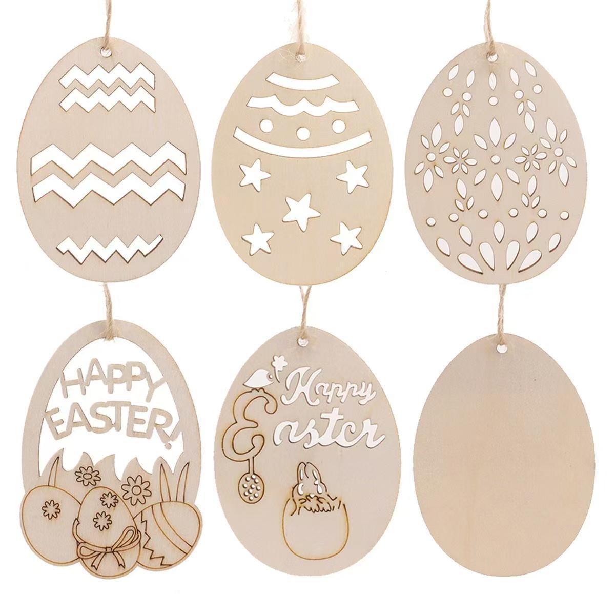 イースターエッグ木製未完成のイースター木製エッグピースDlYペイント工芸品家庭用装飾品