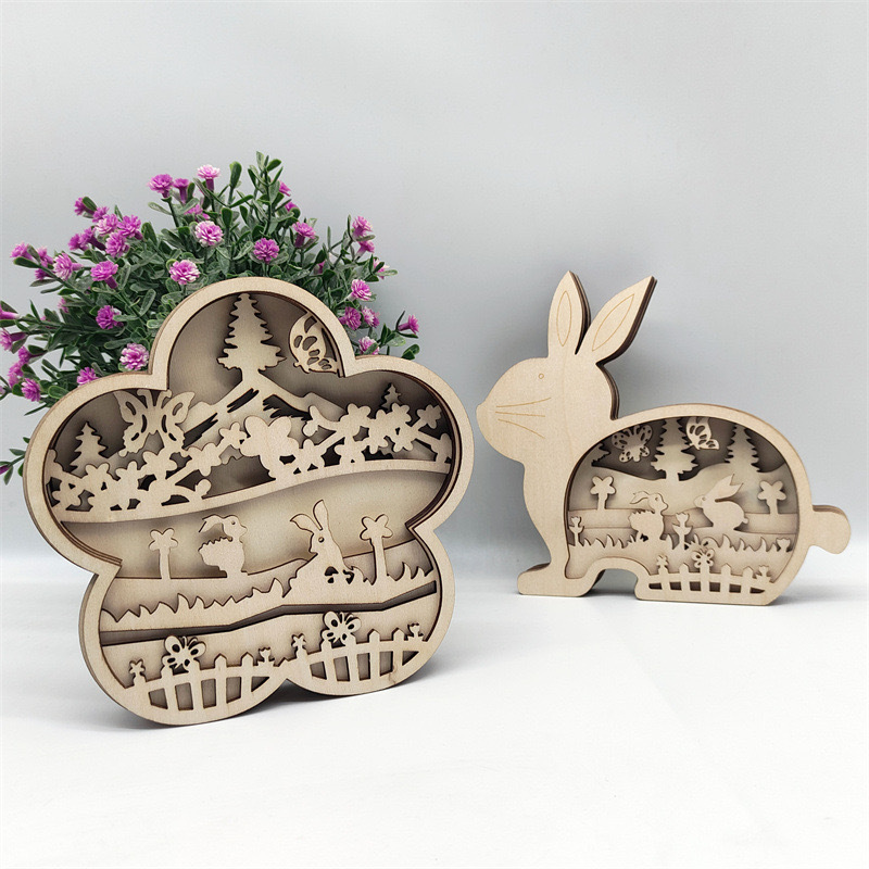 立体木質児童益智塗装DIY幼稚園絵画手作りウサギ透かし彫り工芸品装飾
