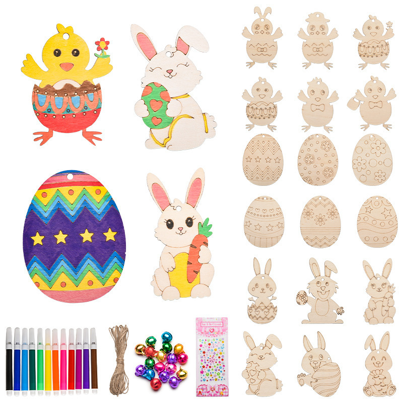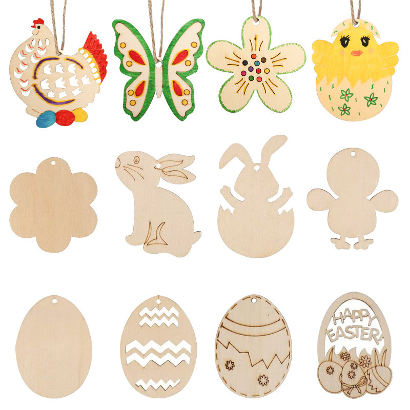 木製工芸品イースター装飾ハロウィーン卵DIY白胚児童彩色落書き木片小ペンダント