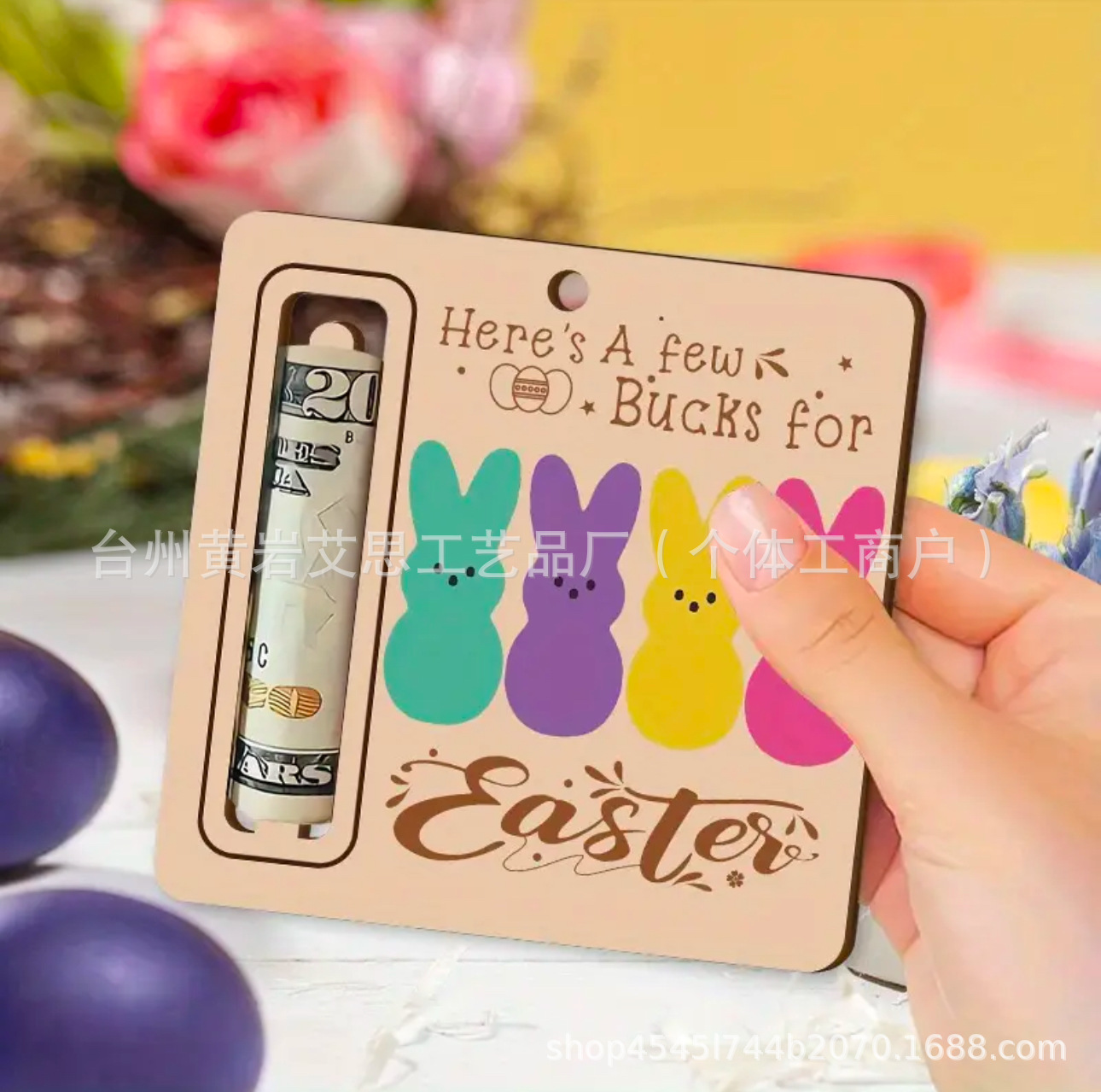 アマゾンの新しい木製パーソナライズされたイースターウサギ漫画財布財布プレゼント祝日装飾ストラップ