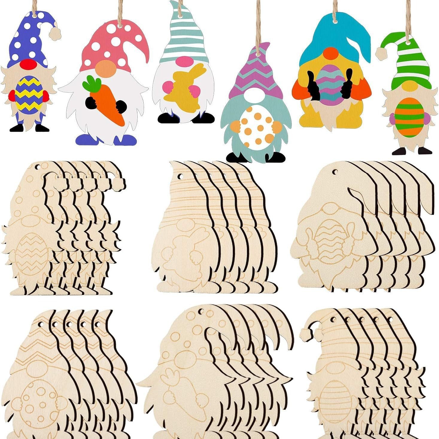 未完成のイースター小人木製装飾品木材吊りイースターロープ付き木材ラベル装飾