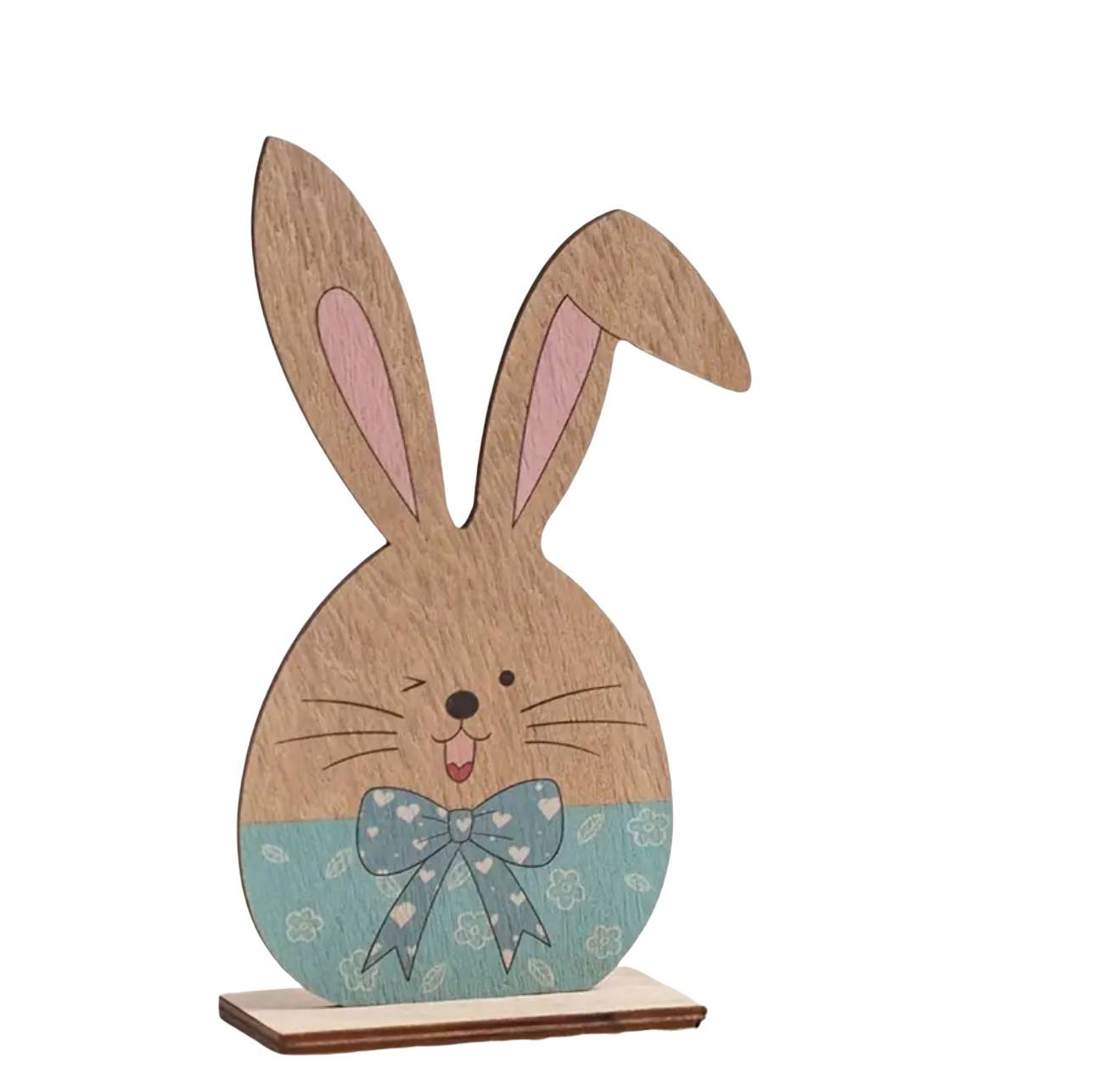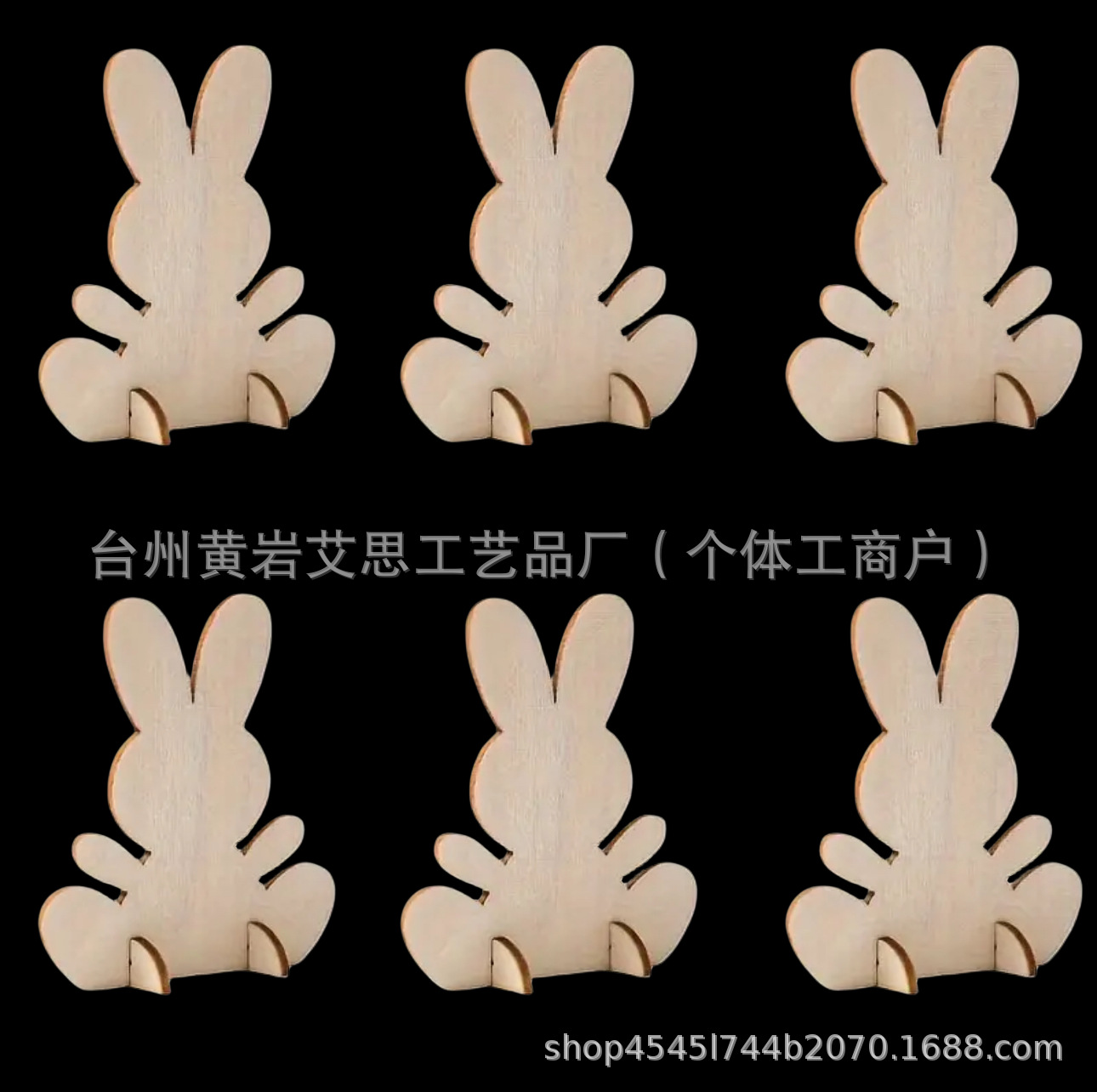 創意的なイースターの木の工芸品の置物のデスクトップはウサギの木の工芸品の置物を飾ります。