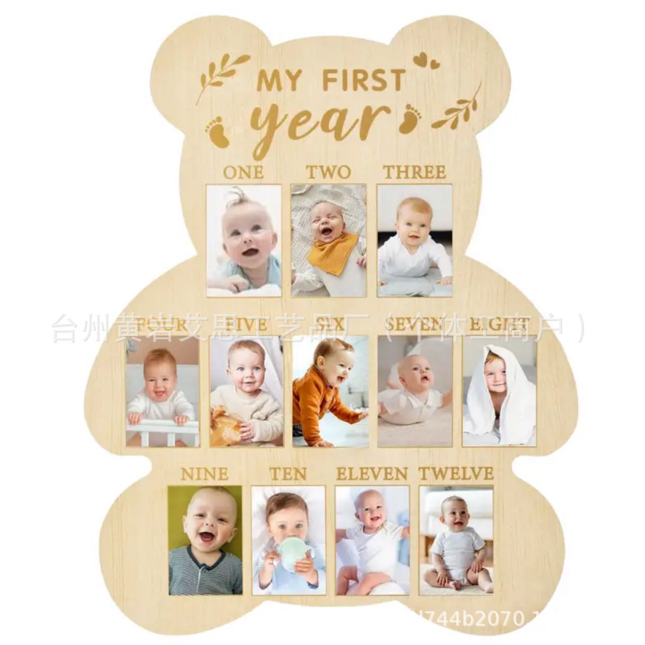 木製新生児記念フォトフレーム新生児月マイルストーンフォトフレーム木製赤ちゃん月フォトフレーム
