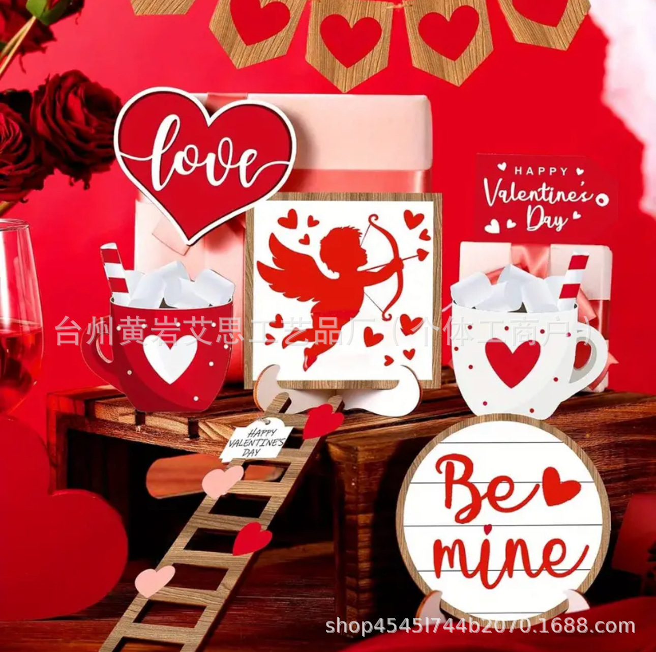 12点セットバレンタインデコレーションセット水牛チェック柄木制ハート形看板テーブルパーティーデコレーションお祭り雰囲気