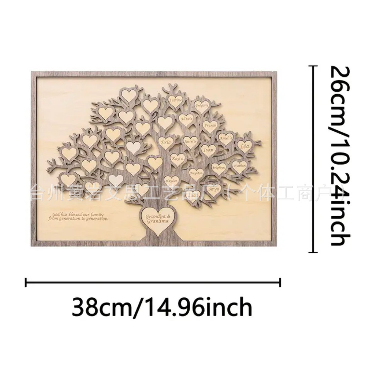 新品木製家系図壁掛け彫刻ハート型周年記念誕生日クリスマス家系図ホームデコレーションプレゼント