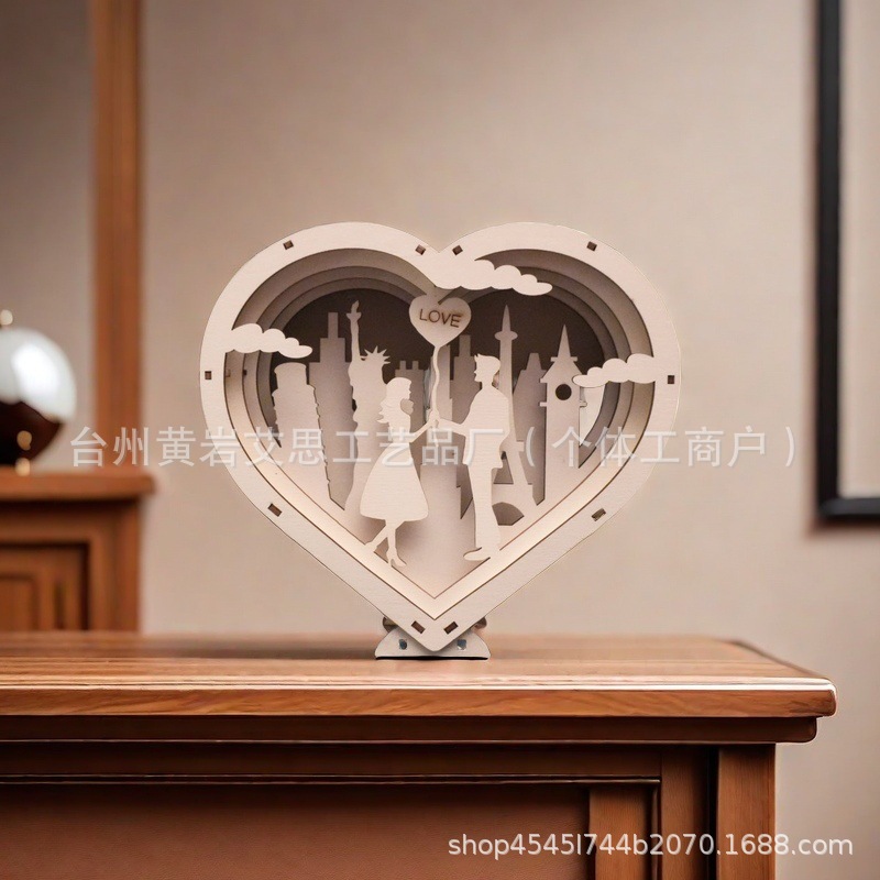 国境を越えた新しいバレンタインデーの愛の置物ロマンチックな結婚祝いの家庭装飾木製のデスクトップ装飾置物