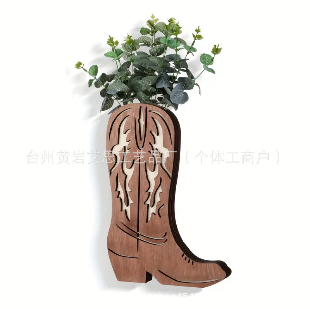 外国貿易木製壁ブーツスタイリング花瓶造花花瓶木製田舎スタイル花瓶装飾