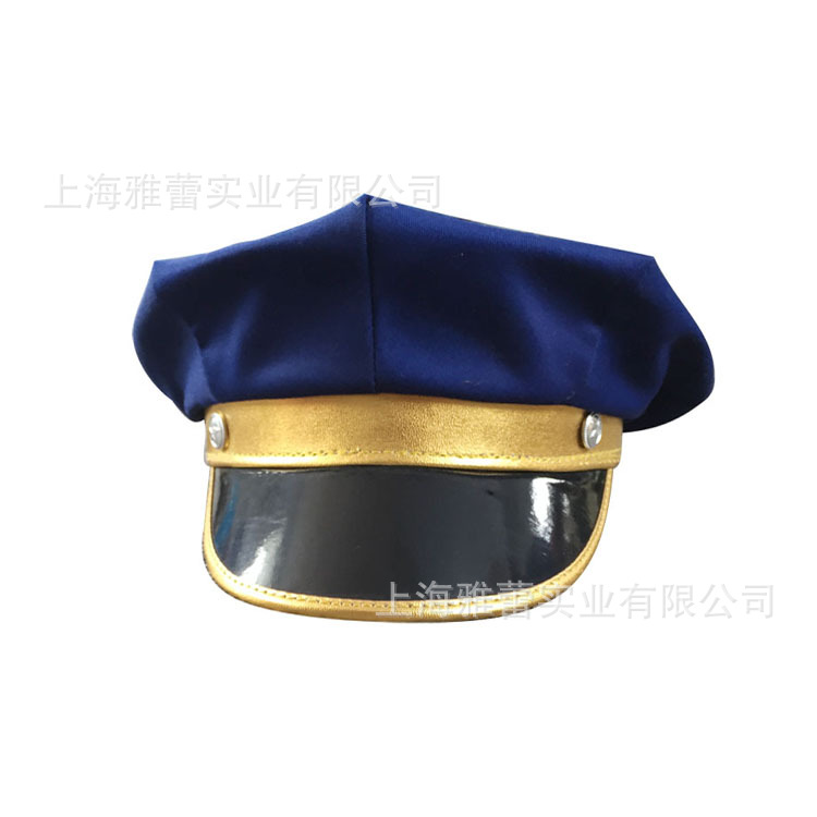 青い布芸機長帽子革のつばの八角帽子のセクシーなキャラクターが帽子を演じます。