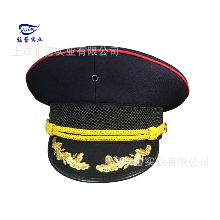 帽子工場大キャップカスタム軍帽保安帽子大ひさし帽子金色麦穂刺繍帽子に沿って帽子を披露する