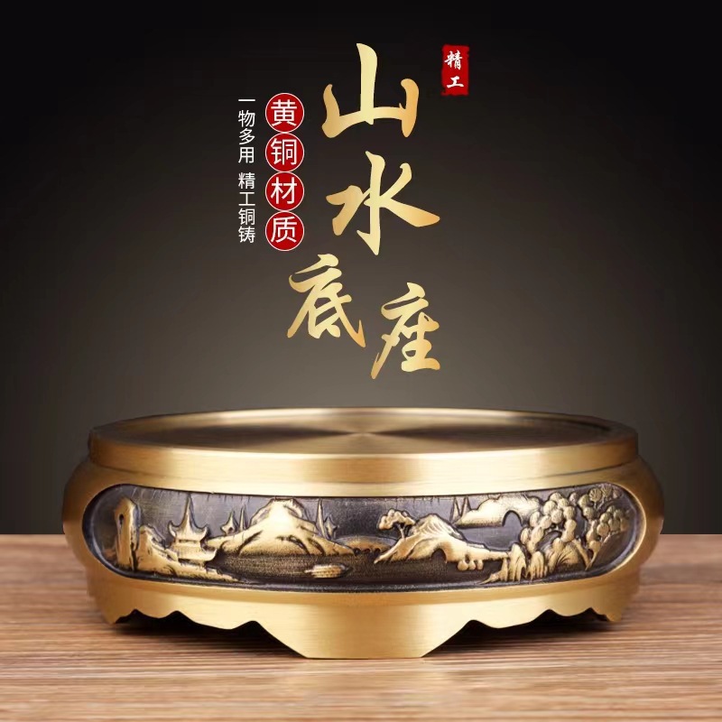純黄銅浮き彫り山水底銅瓢箪香炉台座銅器置物オフィスデスク灰皿置物