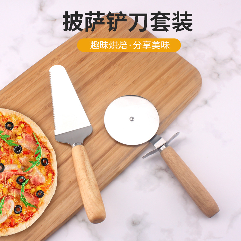 ローラーの中の餅の刀のハンドルの焙煎器のツールの三角のシャベルのピザのシャベルの2つのセットの木の柄のピザのシャベルの刀