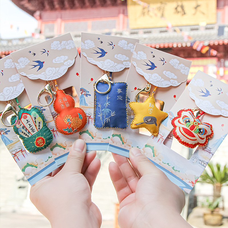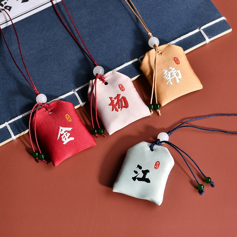 文化的で創造的な景勝地、数百の姓、御守りの香り袋、姓の香り袋、携帯電話バッグ、車の装飾品、刺繍ギフトバッグ
