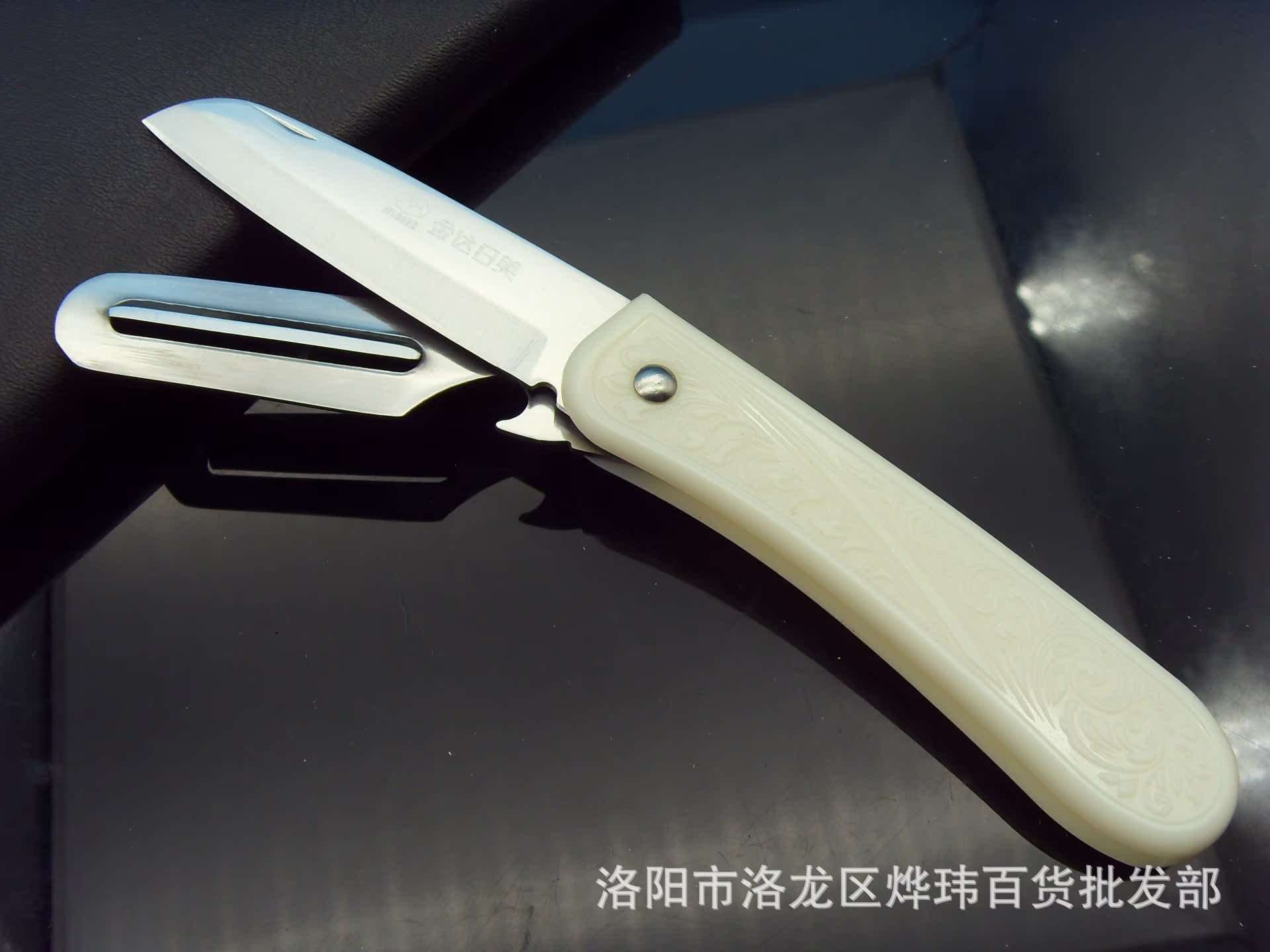 販売卸売り日米5104日米果物ナイフ皮むきナイフ折り畳み可能三用プラスチック柄果物ナイフ