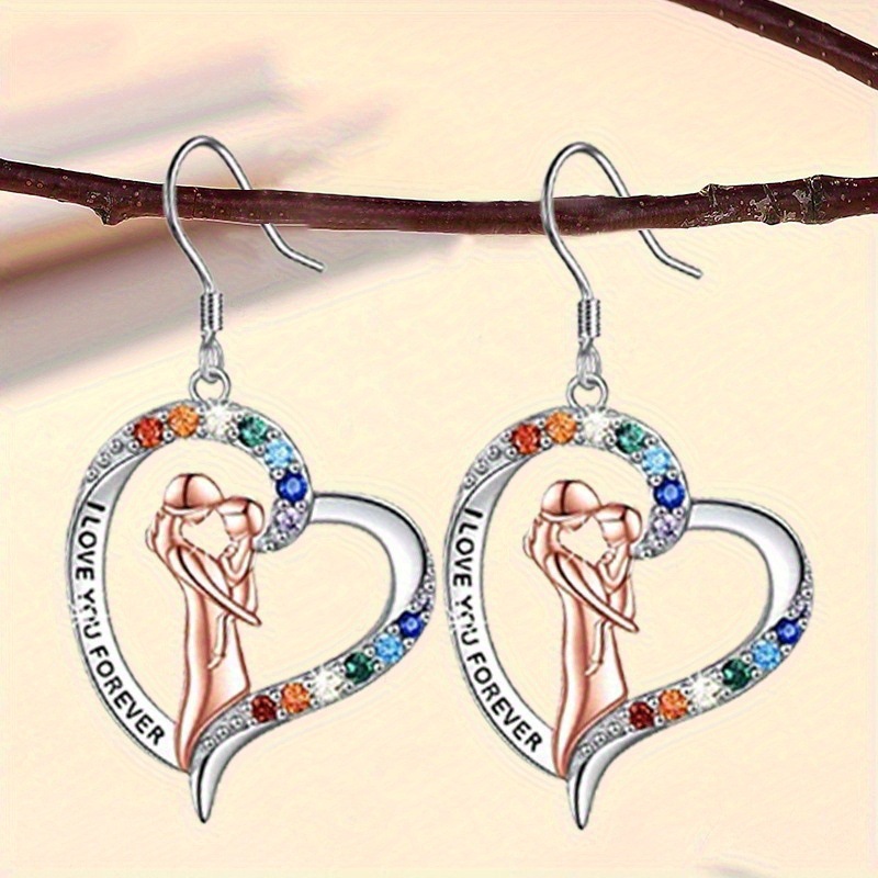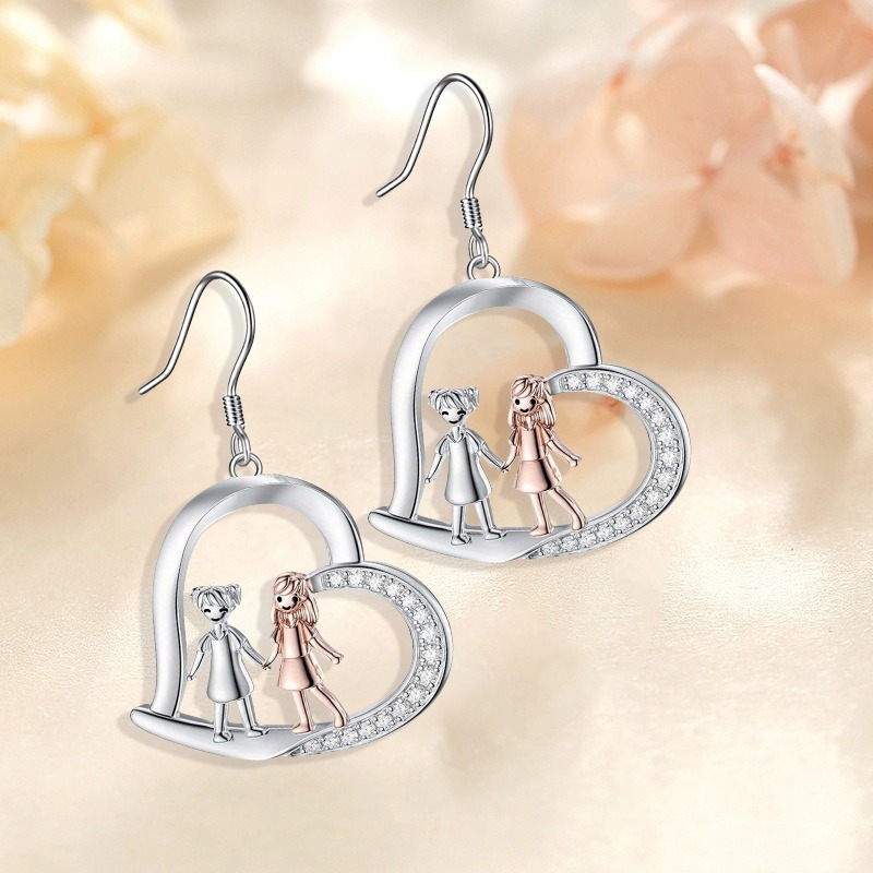 母の日ハート型クリエイティブ個性母娘/母子ペンダントイヤリング精致キラキラ記念プレゼントイヤリング