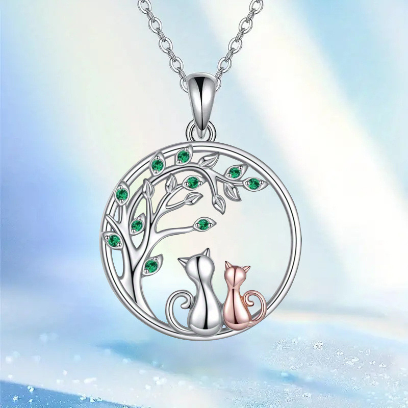 かわいい個性的な創造性猫の大木趣味ペンダントネックレス洗練された記念プレゼントフレッシュなファッションイヤリング