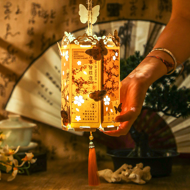 筆墨手書シリーズ提灯国風中秋節手提げ紙提灯創意DIY手作り提灯材料包