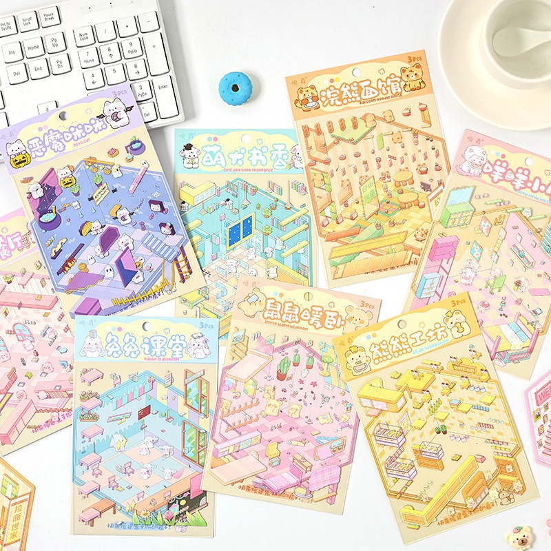 奇妙な住宅シリーズの造景シール創意ミニチュアで可愛いアニメの手帳装飾シーンの益智シール卸売り