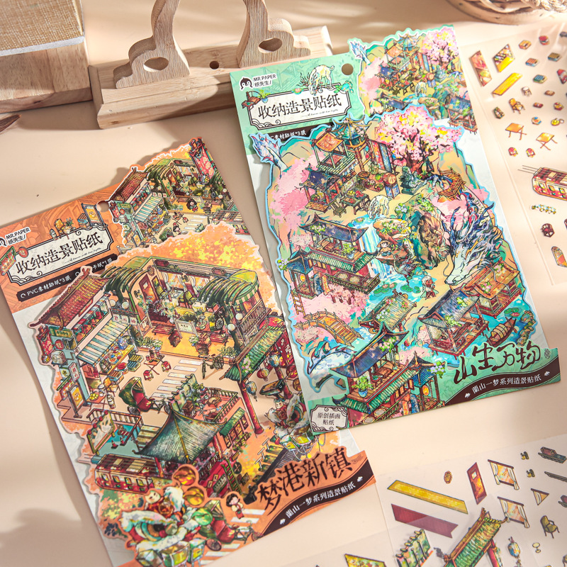 蘭山一夢シリーズ造景シール国風学生趣味手作り3d造景貼り趣味オリジナルdiyシール