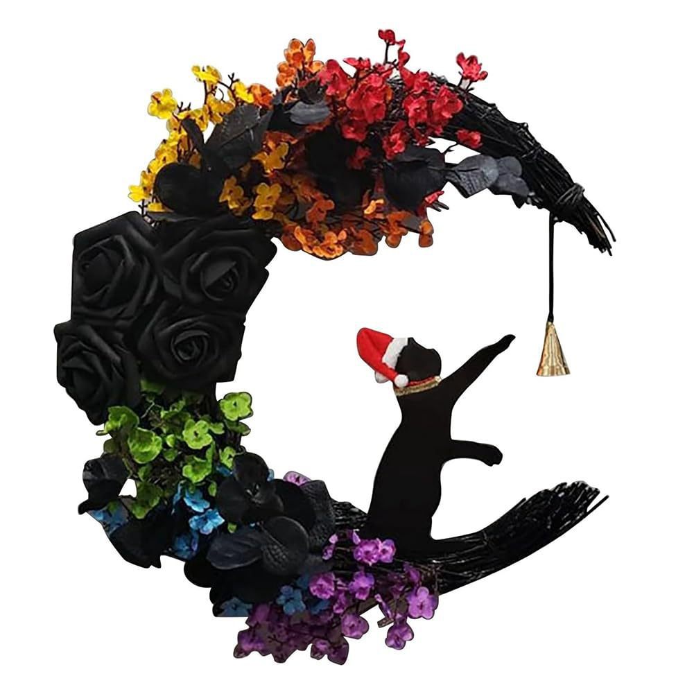 クロスボーダー新しいハロウィン三日月猫ベルガーランドクリスマスムーンシミュレーション籐ガーランド雰囲気ドア吊り