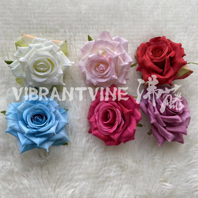 シミュレーションのバラの花の頭の単一の小さい花の絹布のバラの花の頭の結婚祝いの布景の花の壁の背景は造花を飾ります。