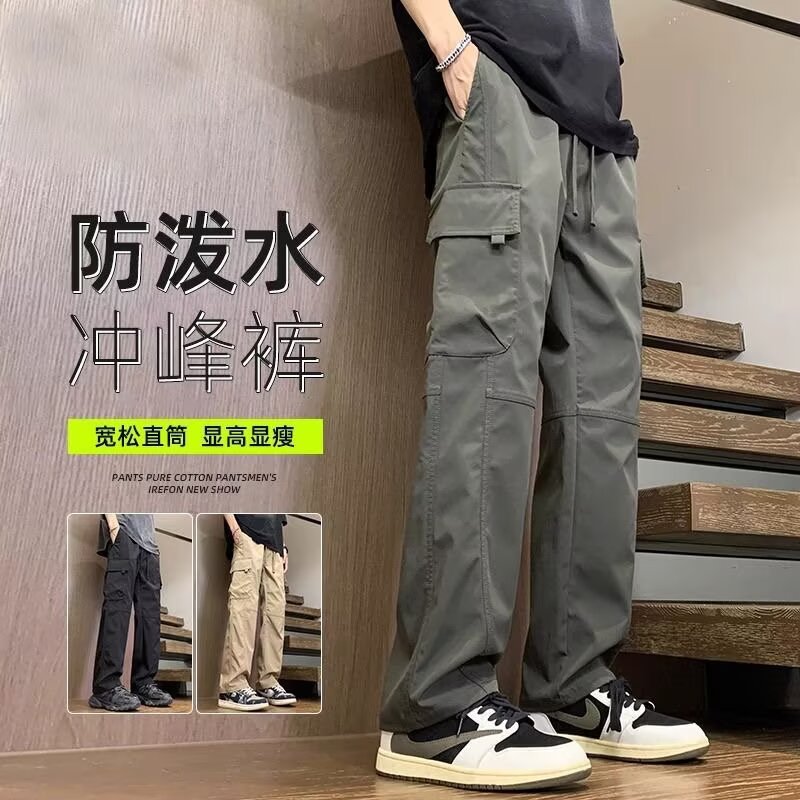 軍の緑のアメリカの工装のズボンの男性の多ポケットの2024秋のズボンの男性の復古のゆったりしているストレートのカジュアルなズボン