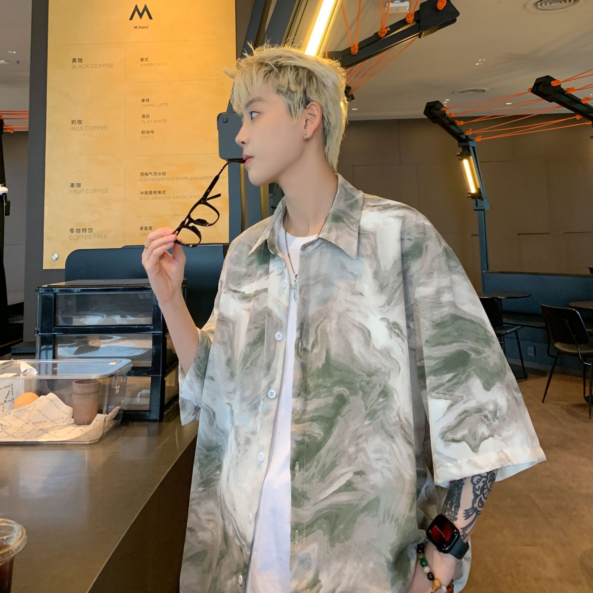 日系city boy氷糸シャツ半袖男夏薄手速乾ゆるいカジュアル五分袖シャツコート