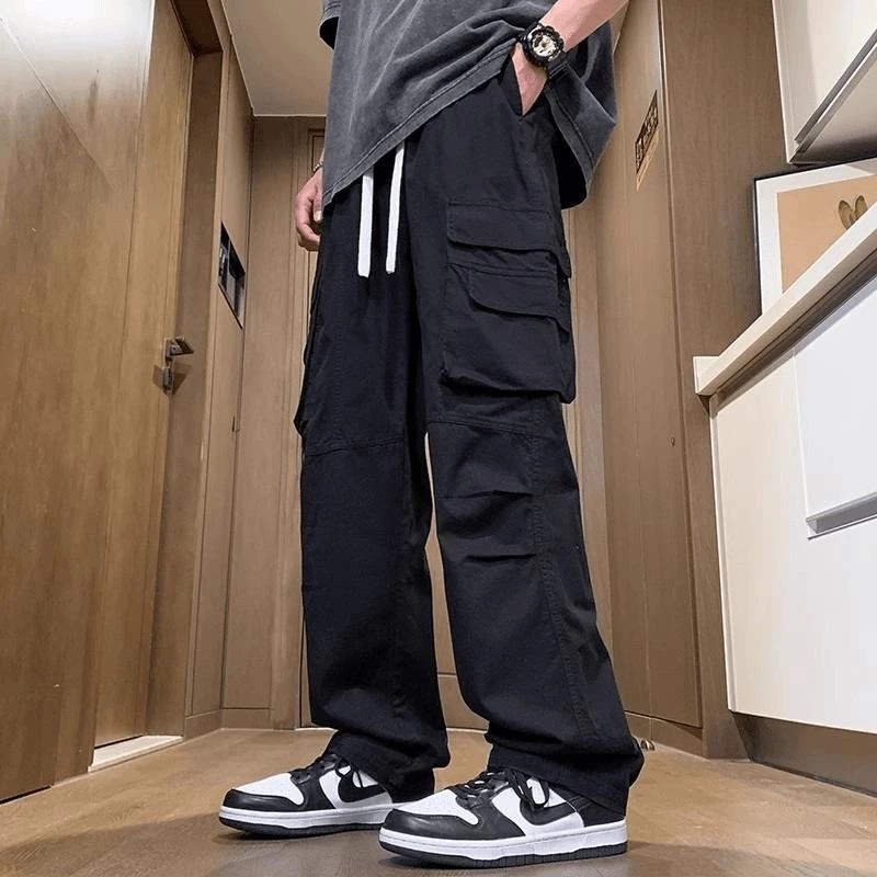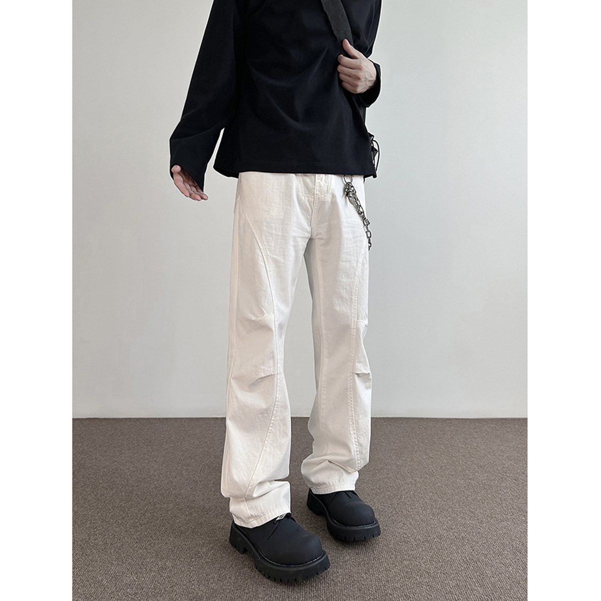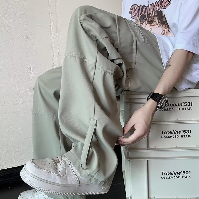 日系工装ポケットカジュアルパンツ男2024秋シーズンのゆるいレトロな百合ストレートデザイン感ファッションブランドのズボン