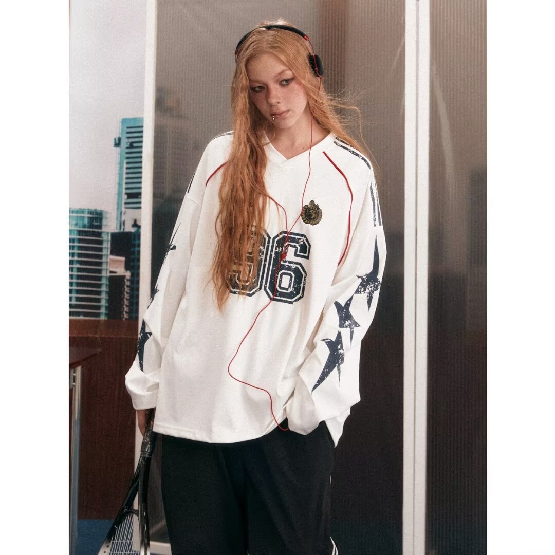 星のプリントのアメリカ式の復古は長袖のvネックのパーカーをつなぎ合わせます。