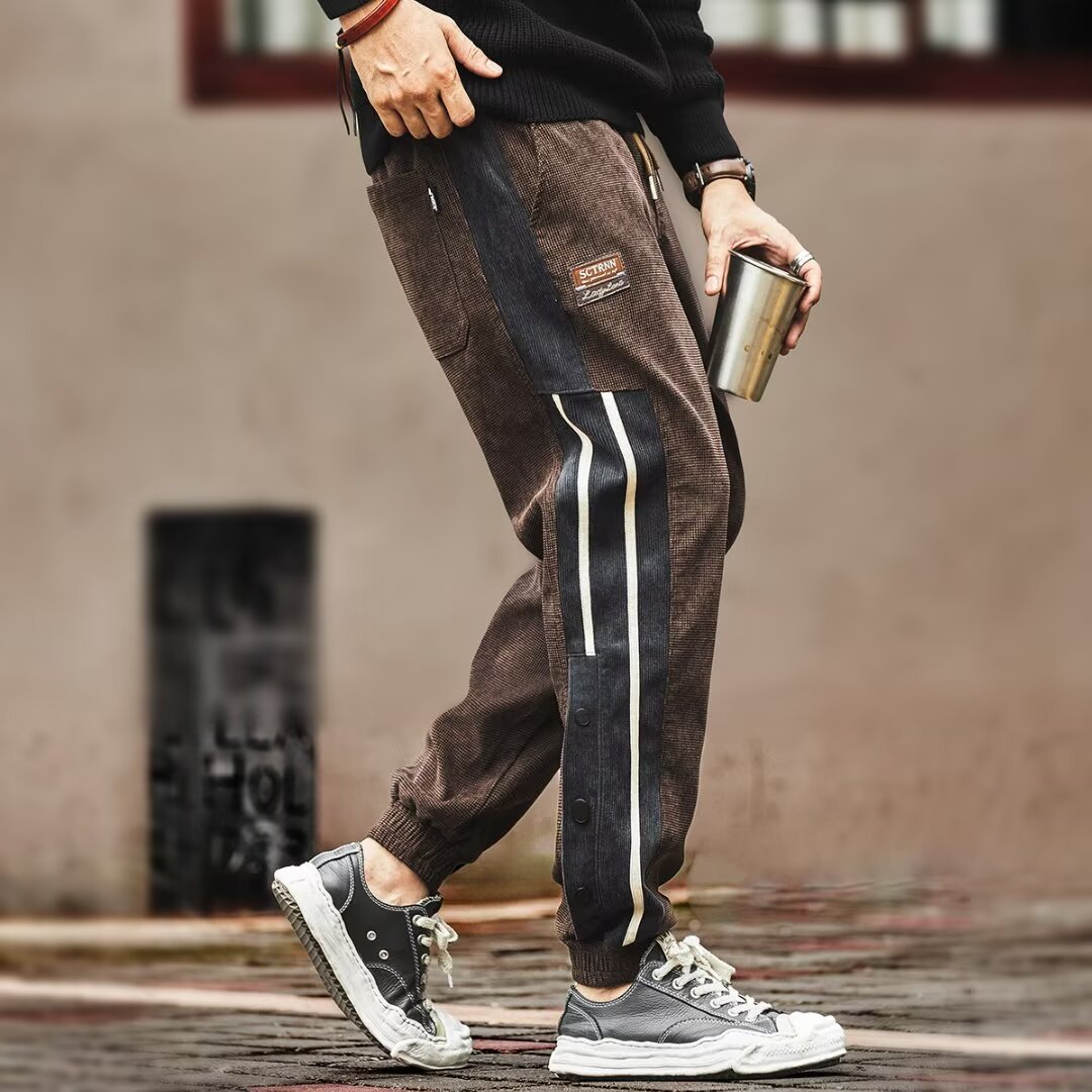 アメリカのレトロな重いポンドのコーデュロイのカジュアルなズボンの男性の2024秋の新型のファッションのブランドの束の足の工装のズボンの衛のズボンの潮