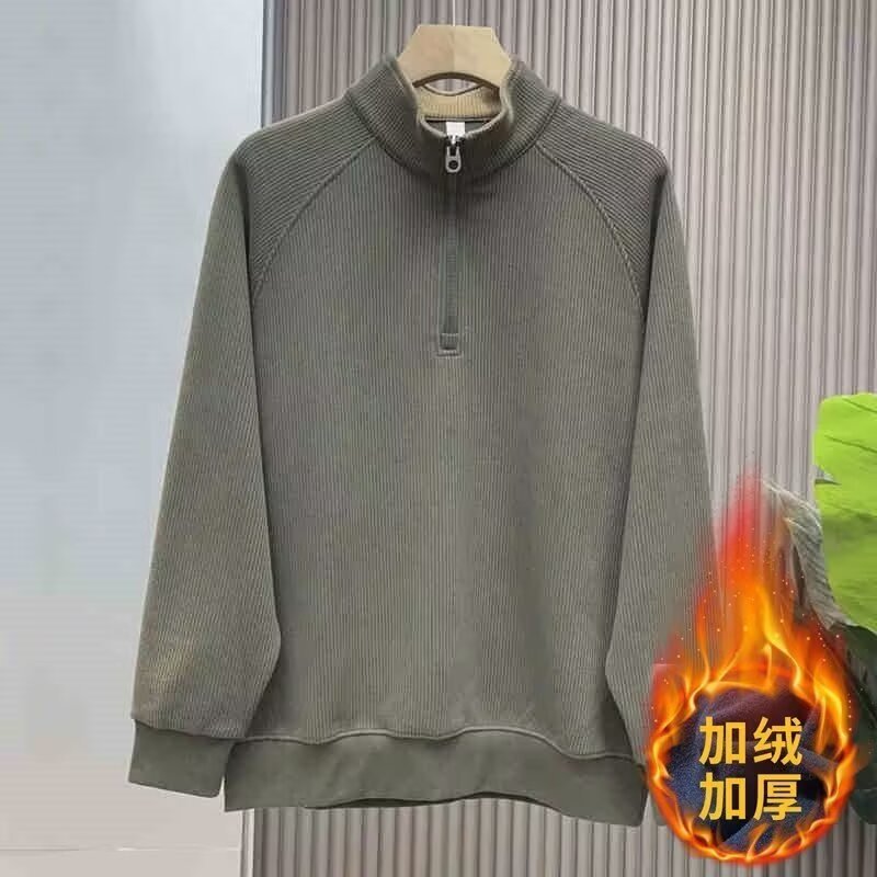 半ファスナー立襟衛衣男性春秋冬にベルベットが厚くなった2024新型のゆるいブランドがシャツを着ている