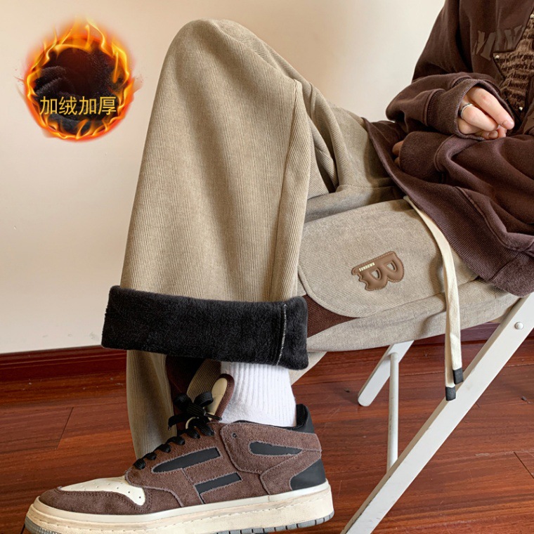 コーデュロイのズボンの男性の冬のファッションブランドのベルベットは、ゆったりとしたカジュアルなワイドパンツのアメリカの高街のストレートパンツを厚くしています