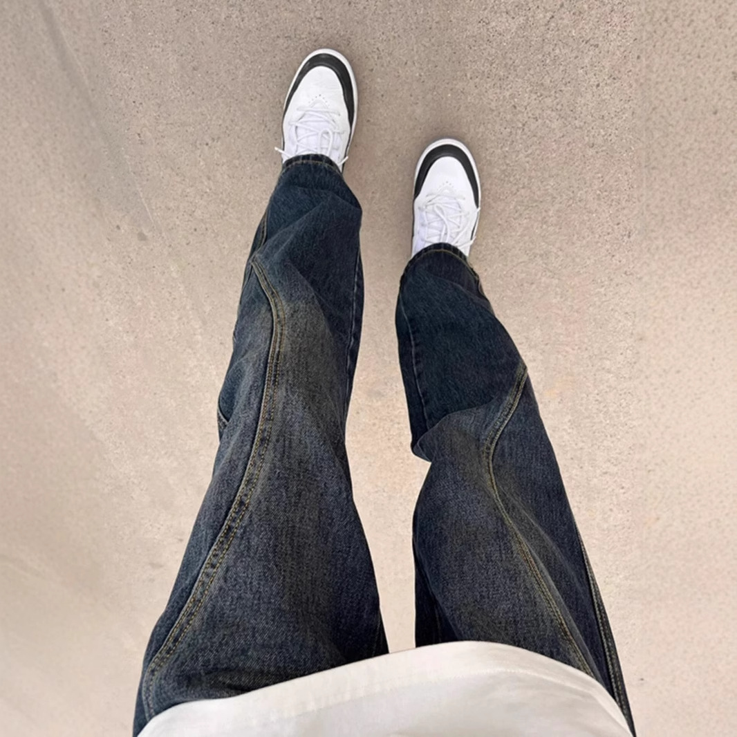 アメリカンジーンズ男水洗いして古いレトロ黄泥染百合ズボン秋潮牌高街ゆるいストレートズボン