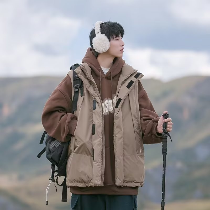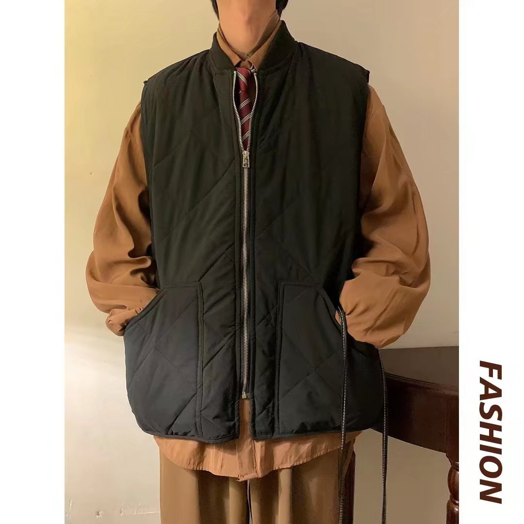 2024秋冬のひし形の格子の薄いタイプの綿のベストの男性の袖なしの厚い馬は綿の服のコートを挟んで日本の肩に入ります。