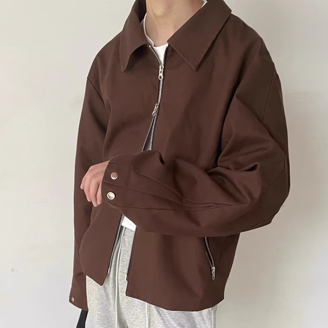 アメリカのレトロなファスナーの形のジャケットの男性の春と秋のファッションブランドの高級な質感のcleanFitのゆったりしたカジュアルなコート