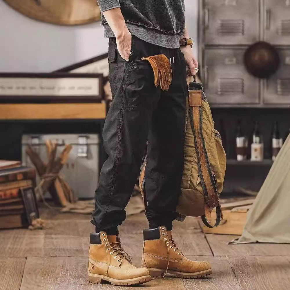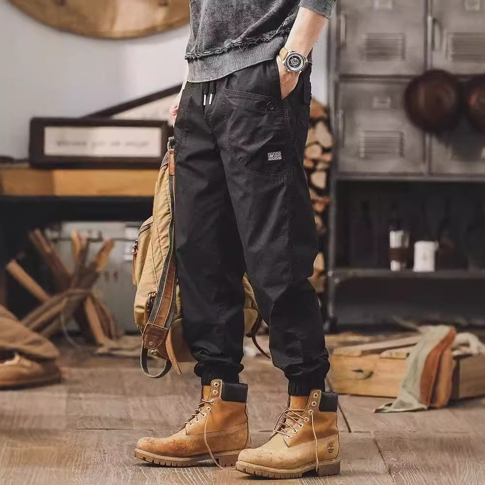 英倫雅痞工装ズボン男性春秋タイプのファッションブランドのゆるい足首ズボン2024新型アメリカ式カジュアルズボン
