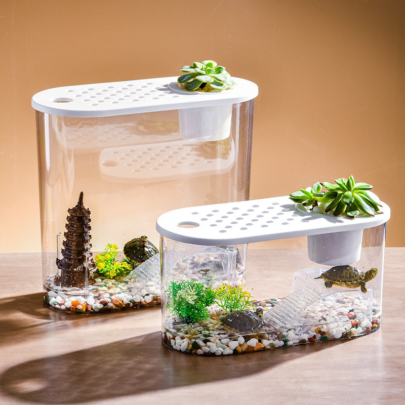 微景観転倒防止高透亀かめオフィス観賞小水槽家庭用小形水培植物金魚鉢
