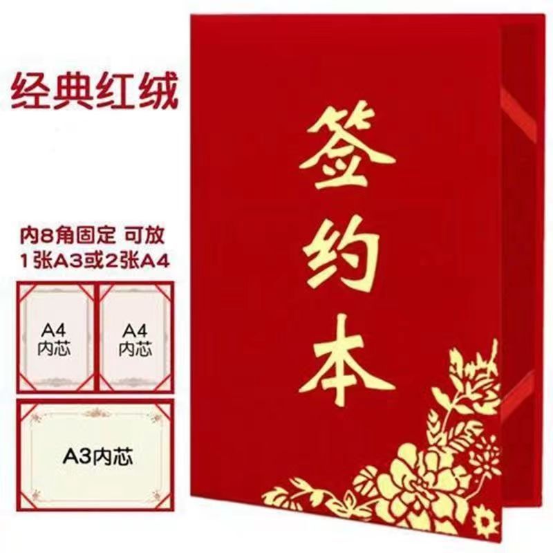 高級スエードレザーシグネチャードA4a3契約書証明書レッドシェル朗読模造レザーカバー賞状ホットスタンピングブック