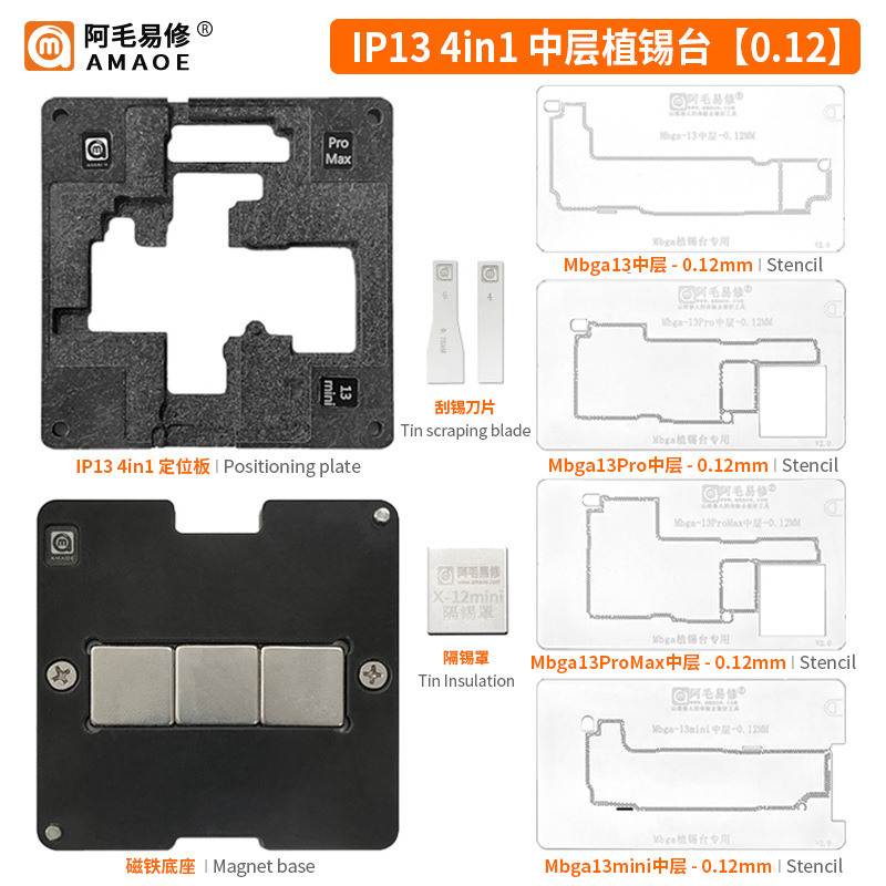 阿毛易修/IP13-4合1中層植錫台/13/pro/max/mini/中層位置決め板/鋼網