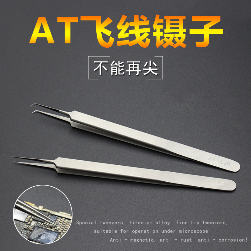 携帯電話指紋飛線修理エルボーピンセット工具電子修理精密ステンレス先端at11