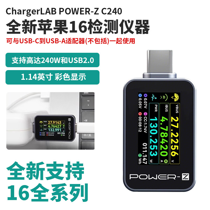 ChargerLAB POWER-Z C240 240W 電圧電流充電電力 Apple 1516 検査装置