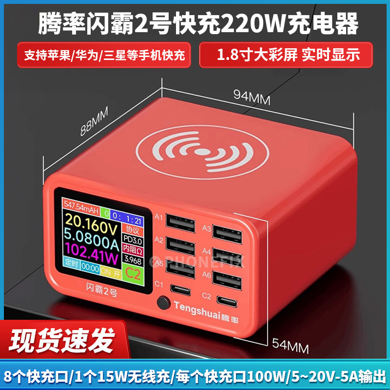 騰率閃覇2号超速充220w充電器デジタル表示無線充電15wはPD/QCをサポートしている