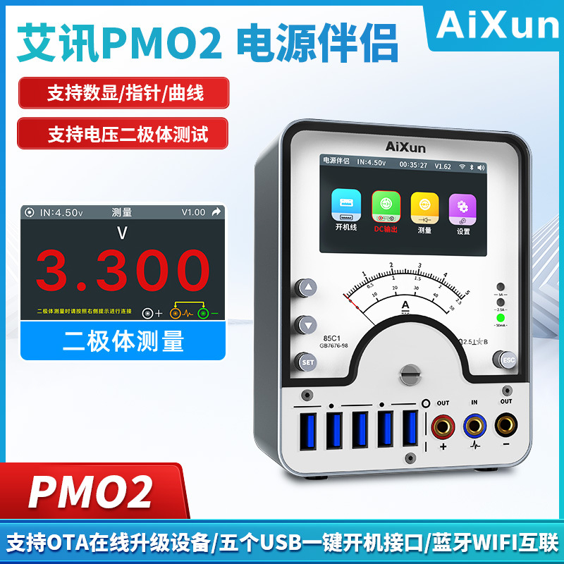 艾訊PM02電源パートナー携帯電話修理起動電流計はデジタル表示指針曲線表示機能をサポートしている