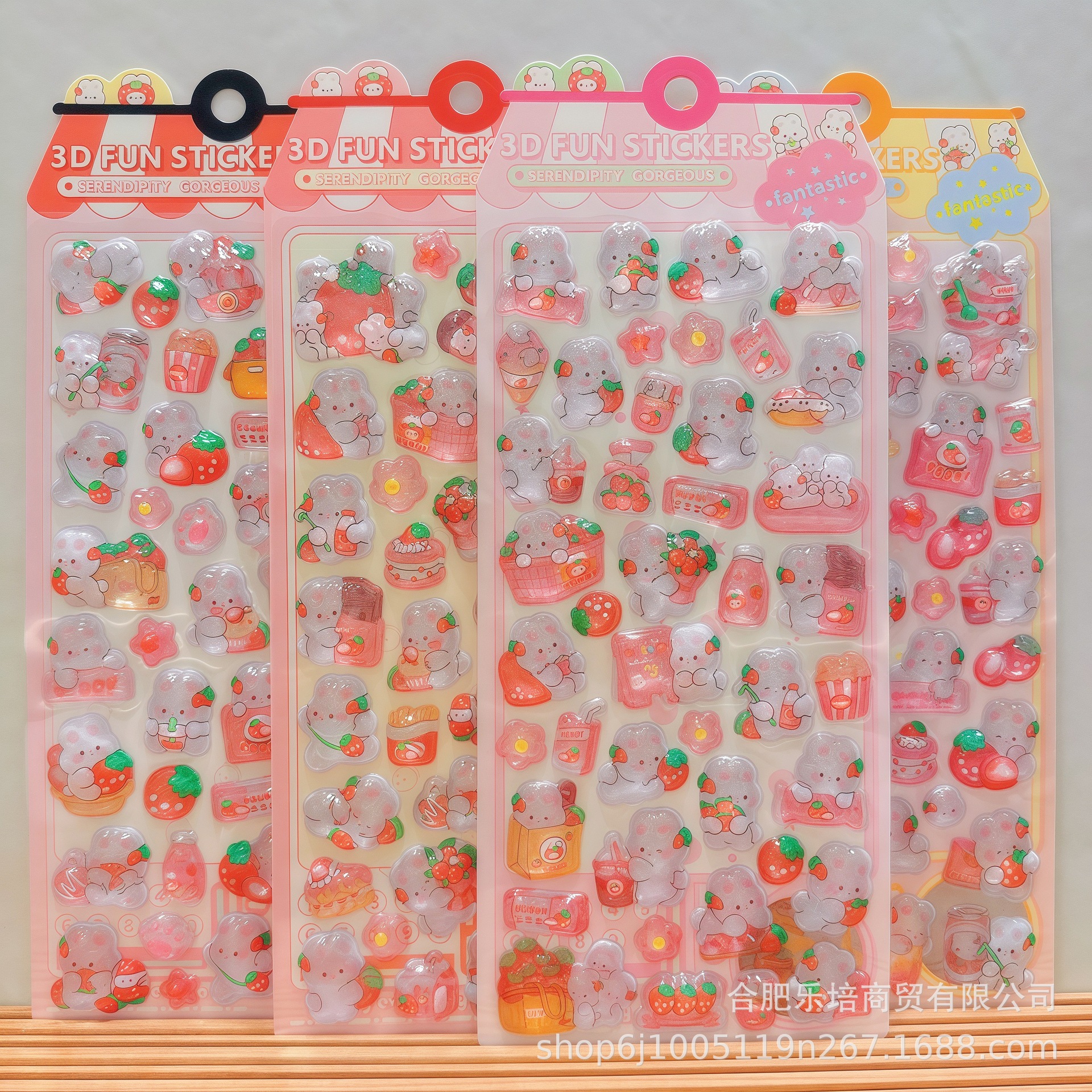 3D立体クリスタルステッカー ピンクのうさぎちゃん 可愛いイチゴ 小さなウサギ 子供の手作りデコレーション 携帯電話素材ステッカー