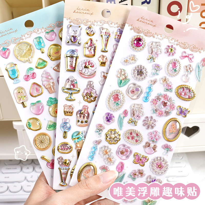 3D カラフルなレリーフクリスタル立体子供用ステッカーかわいいペット動物ガールハート手作りご褒美携帯電話装飾ステッカー