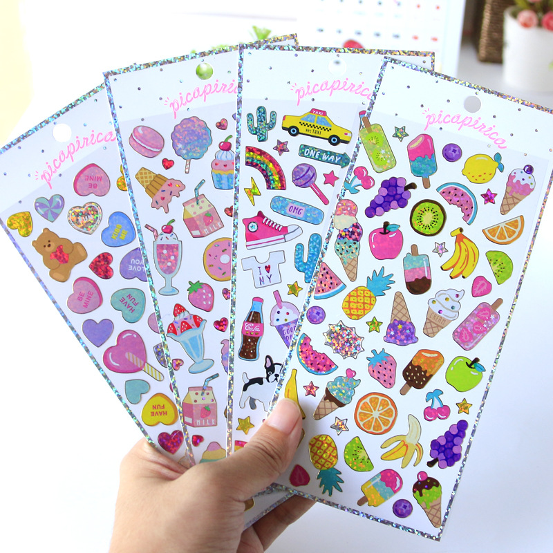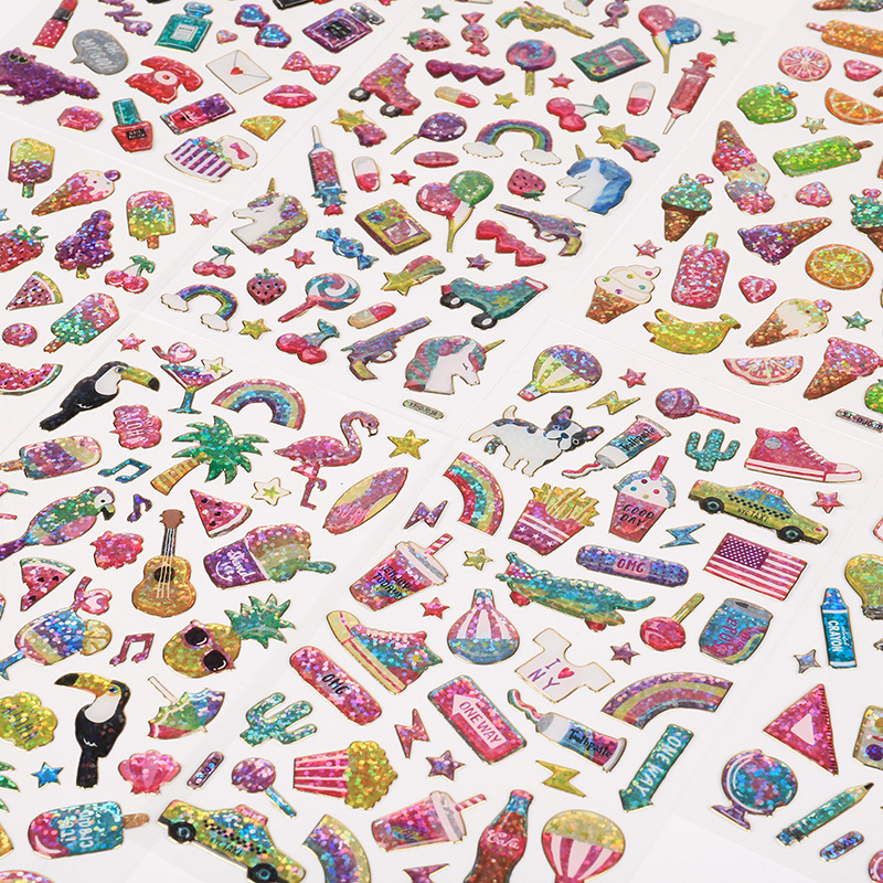 Ins日系レーザー手帳漫画シールかわいい動物猫果物ユニコーン手作り装飾アルバムシール