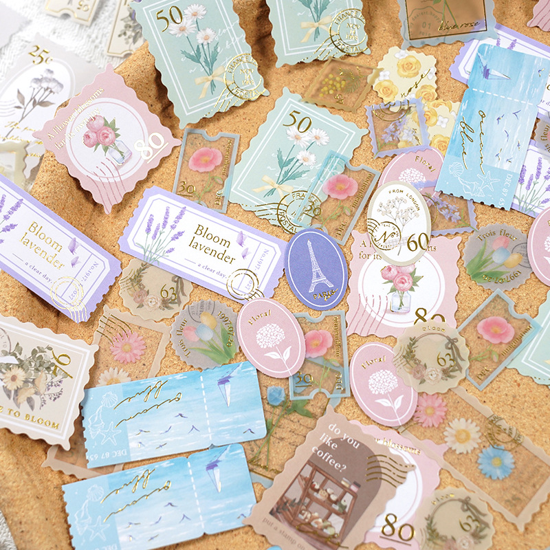 レトロなホットスタンプハンドブックステッカーパックダイカット花イラスト diy 子供の手作り装飾材料シールステッカー