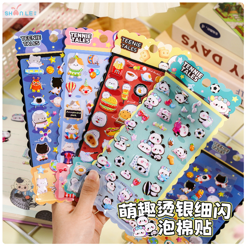 細かい光沢のあるシルバーのかわいい漫画のかわいい動物 3D 立体ステッカー子供のご褒美教育手作り装飾ステッカー